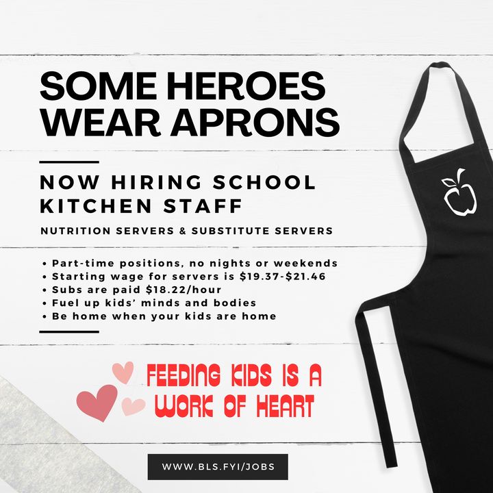 The school district emphasizes the importance of feeding children, stating that it is a work of heart. Interested applicants can find more information and apply at www.bls.fyi/jobs.