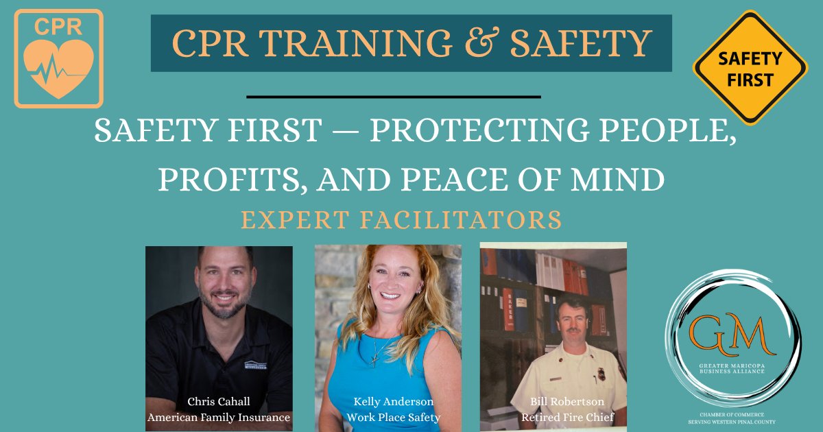 Maricopa, Ariz. — A CPR and workplace-safety workshop set for March 24 from 2:00 p.m. to 4:30 p.m. at the Maricopa Library and Cultural Center (18160 N. Maya Angelou Drive) will cover CPR, emergency readiness, workers' compensation and building a strong workplace-safety culture, with speakers Bill Robertson, Chris Cahall and Kelly Anderson; registration is in the comments, and the event is presented by the Greater Maricopa Business Alliance Chamber of Commerce.
